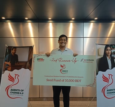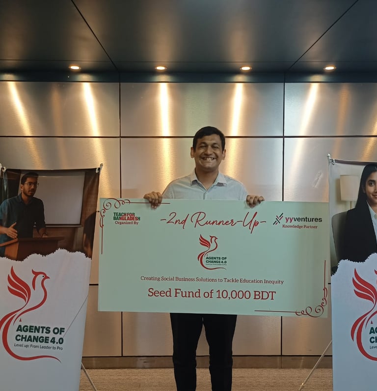 অত্যন্ত আনন্দের সাথে আমরা জানাচ্ছি, আমাদের প্রজেক্ট সহচর Teach For Bangladesh আয়োজিত Agent of Change 4.0 এর ফাইনালে দ্বিতীয় রানার আপ ও Seed funding অর্জন করতে সক্ষম হয়েছে